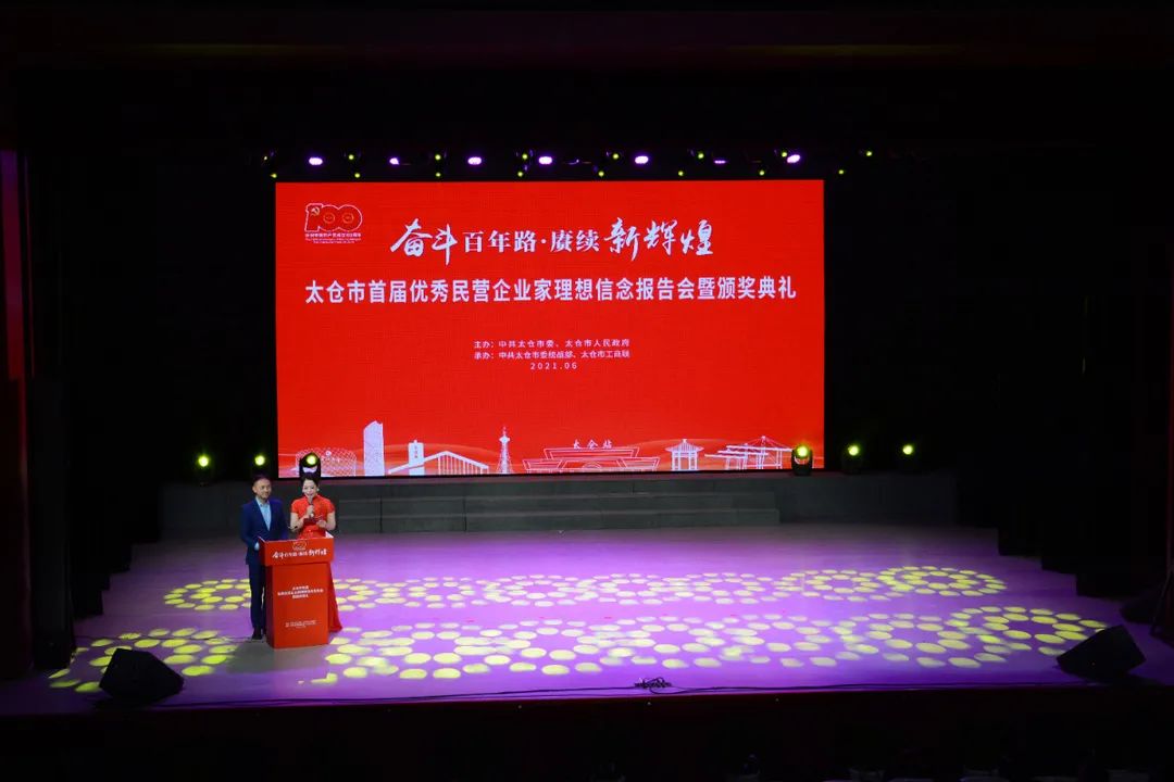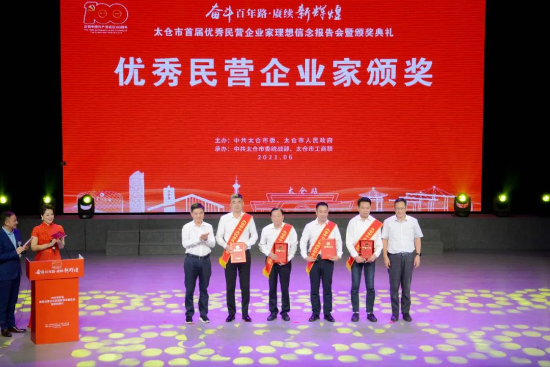 儀式上,太倉市人民政府授予康輝科技董事長陳利忠先生“太倉市優(yōu)秀民營企業(yè)家”稱號。