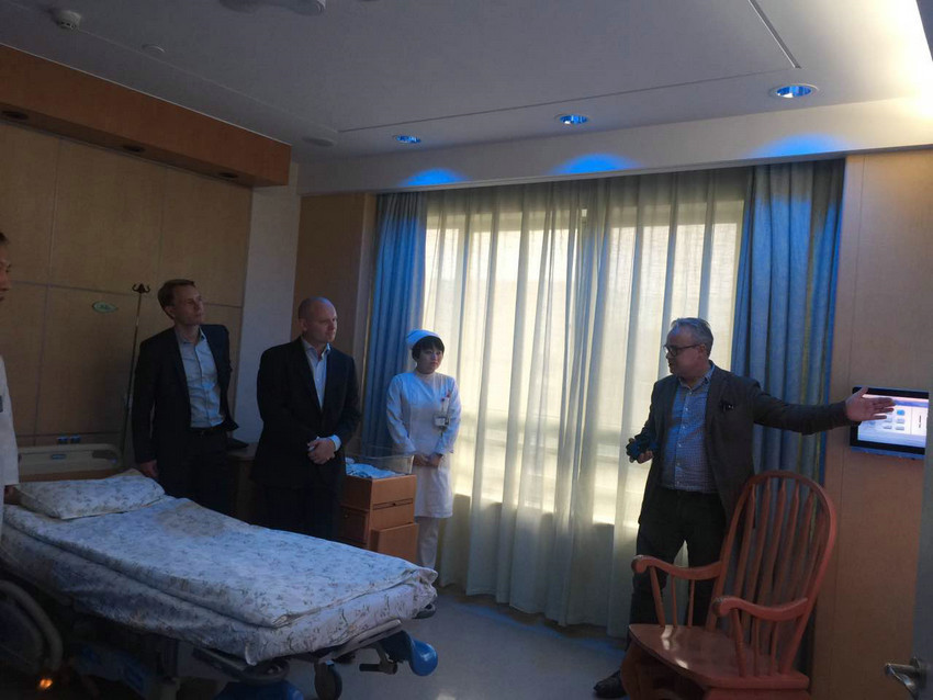 以丹麥?zhǔn)锥几绫竟髤^(qū)議會(huì)副議長(zhǎng)martin greertsen為首的丹麥代表團(tuán)21日訪(fǎng)問(wèn)蘇州市立醫(yī)院,參觀(guān)了我司在蘇州市立醫(yī)院的樣板房家庭化產(chǎn)房區(qū)(FCMC/LDRPs)、感覺(jué)性產(chǎn)房和視頻音樂(lè)助產(chǎn)設(shè)備(SDR/Wavecare)。