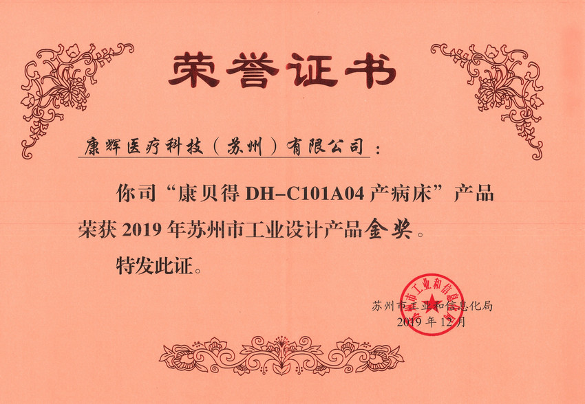 根據(jù)蘇州市工信局公布的《2019年蘇州市工業(yè)設(shè)計(jì)產(chǎn)品優(yōu)秀獎(jiǎng)獲獎(jiǎng)名單》顯示,我司申報(bào)的“產(chǎn)病床”產(chǎn)品榮獲“蘇州市工業(yè)設(shè)計(jì)產(chǎn)品金獎(jiǎng)”,這是公司技術(shù)創(chuàng)新的又一碩果,公司將持續(xù)在研發(fā)上面加大投入,繼續(xù)創(chuàng)造價(jià)值。